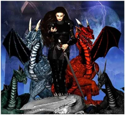 Takhisis was sister to Gilean and Paladine, and was the goddess of control and Evil. Takhisis, along with Paladine, was called from the Beyond to be custodians of the world. She was the head of the Evil gods, consort to Sargonnas, and mother to Zeboim and Nuitari. Takhisis was responsible for the corruption of the Chromatic Dragons, and appeared in one form as a dragon with heads of blue, black, white, red, and green.